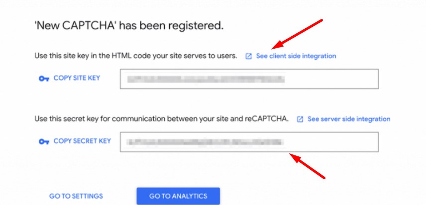 - Sau khi nhập Site key và Secret Key được cung cấp, dán các khoá này vào khu vực cài đặt plugin trong WordPress.