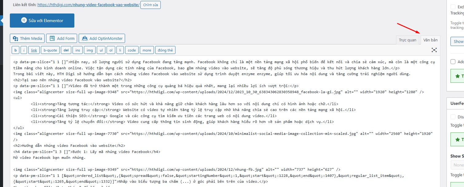 Chuyển sang chế độ soạn thảo “Văn bản” (đối với các phiên bản mới là “Mã HTML”).